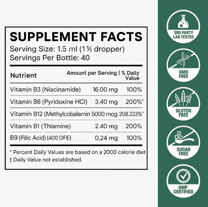 Unlike tablets or capsules, our liquid methylated drops are designed for faster absorption and maximum effectiveness – so you feel the difference quickly.